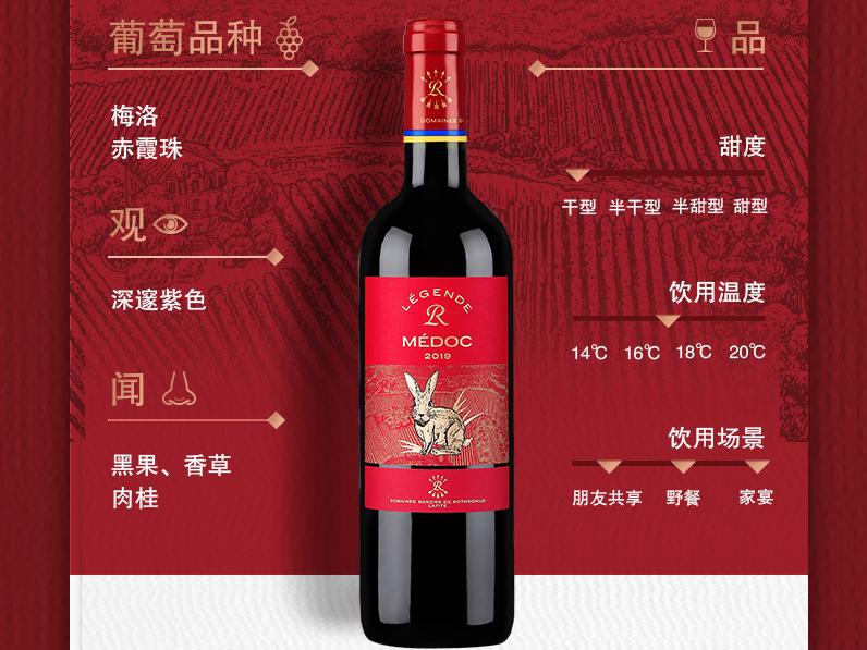 传奇源自拉菲罗斯柴尔德梅多克红葡萄酒兔年限量款