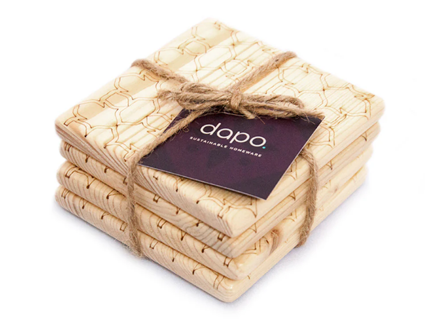 ALAS 杯垫是一个创新的范例,展现了如何将废弃木材转化为精致的餐桌用品。