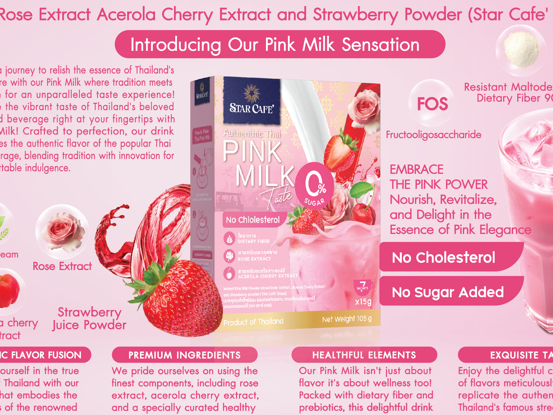 Pink Milk with the benefit from rose extract and acerolacherry extract . no sugar added