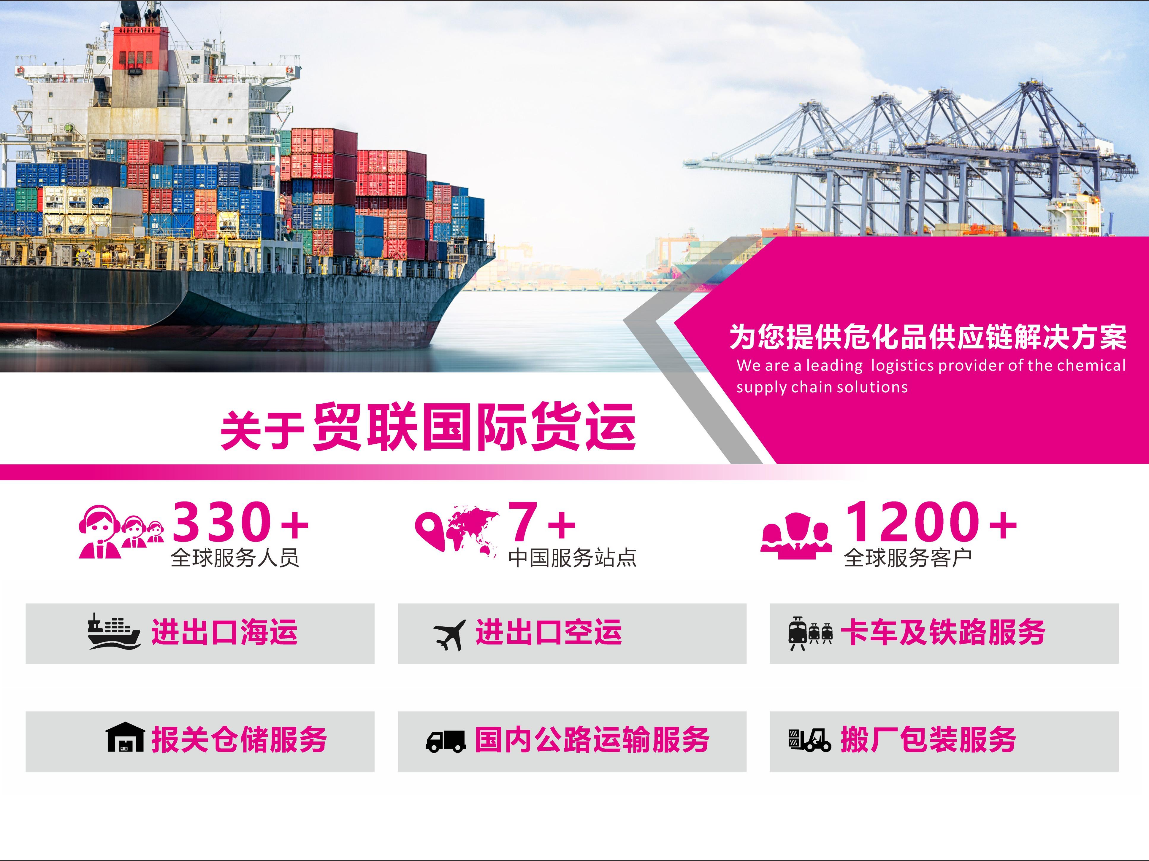 贸联国际货运代理有限公司成立于 2011 年,由贸联科技有限公司(HK)投资,是经中华人民共和国商务部、交通部、海关总署、民航总局批准的一级国际货运代理企业,同时为中国报关协会会员单位,拥有高级 AEO 认证,属于五星级 A 类报关行,清关差错率远低于行业水平。