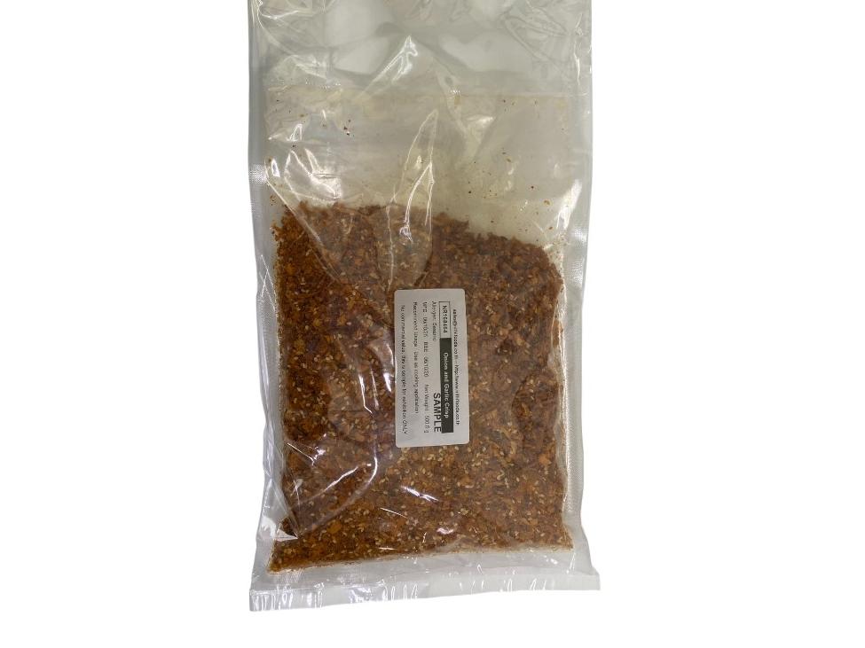 ONION AND GARLIC CRISP is a savory topping made from golden-fried onion and garlic adding a rich aroma and crunchy texture to any dish. It's for Sprinkle over rice, noodles, or grilled dishes. The ingredients include Spices (onion, garlic, chili), Sesame seed, Rice bran oil, Sugar, Salt, Yeast extract, and Citric acid. FLAVOR & AROMA: Characteristic flavor of Garlic, Onion and Sesame and has a penetrating aroma, salty and sweet sensory profile. The product contains Sesame. Country of Origin: Thailand.