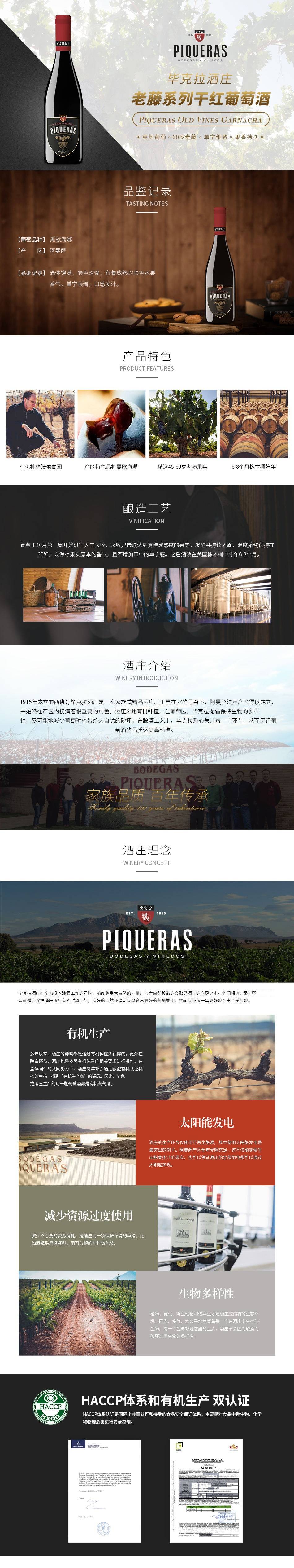 西班牙毕克拉酒庄是一座家族式精品酒庄,正是在它的号召下,阿曼萨法定产区得以成立。酒庄采用百分百有机种植,在葡萄园,毕克拉提倡保持生物的多样性,尽可能地减少葡萄种植带给大自然的破坏。在酿酒工艺上,毕克拉悉心关注每一个环节,从而保证葡萄酒的品质达到最高标准。