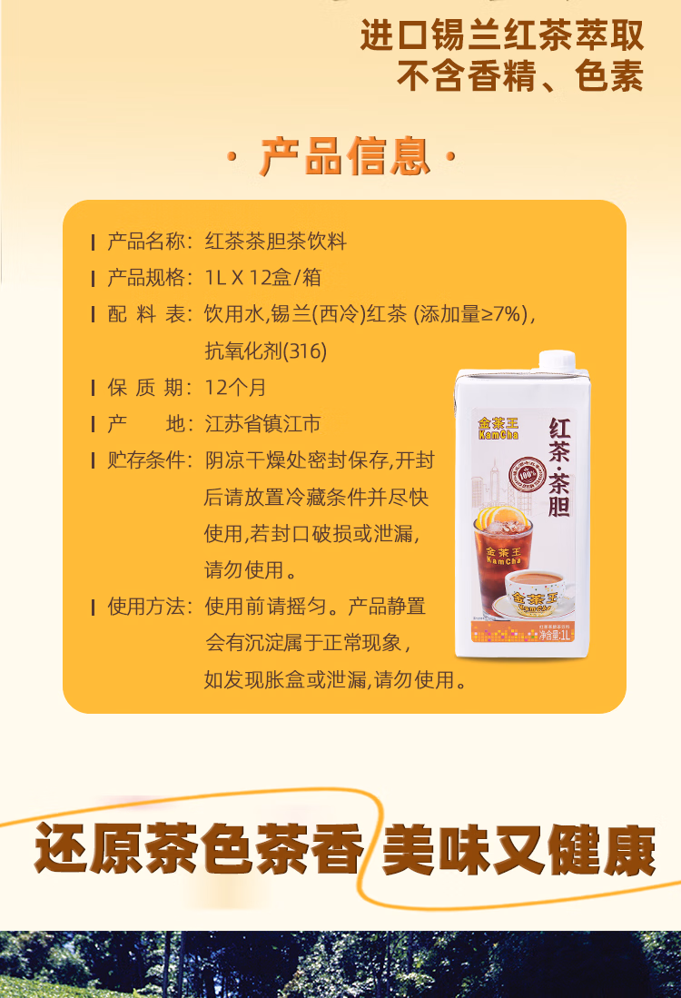 红茶茶胆饮料;进口斯里兰卡红茶萃取,不含香精色素