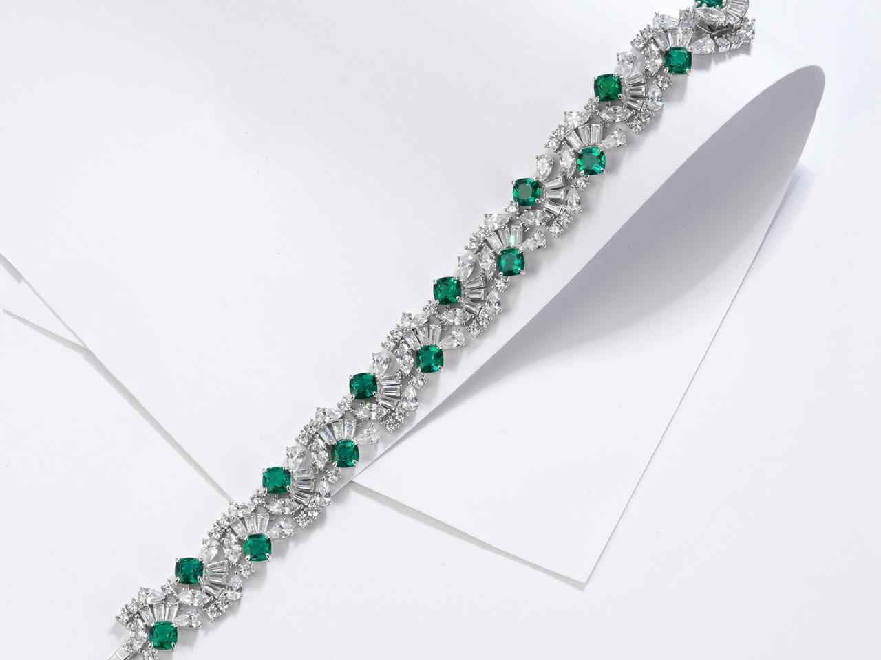 925银镶嵌培育祖母绿、蓝宝石、红宝石戒指\项链\手链\耳饰