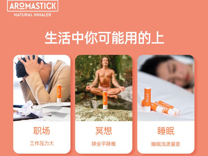 AromaStick全天然鼻吸棒之轻松棒非常适合快速有效地解决日常压力,并在忙碌的一整天或之后帮助放松身心。