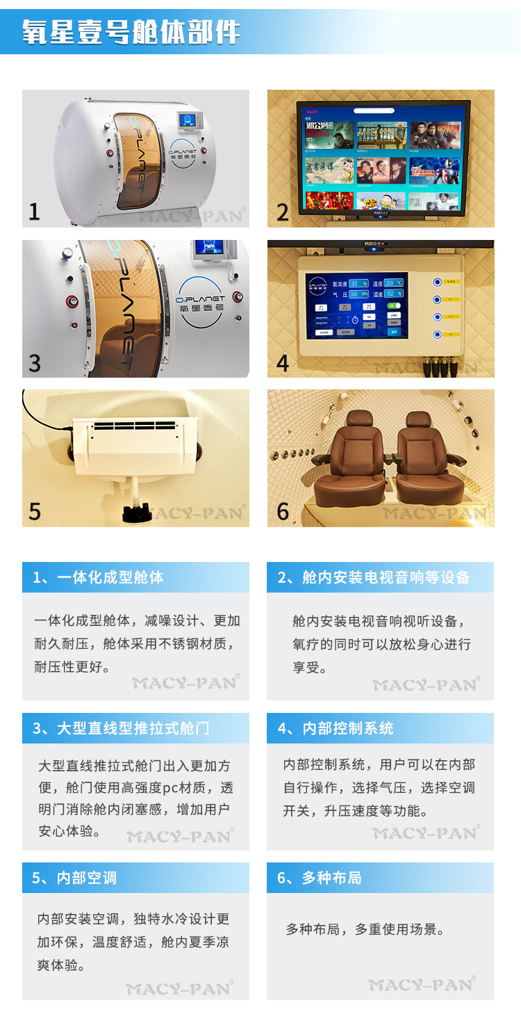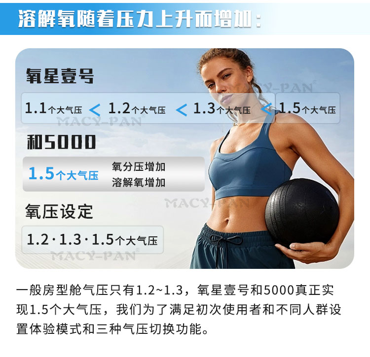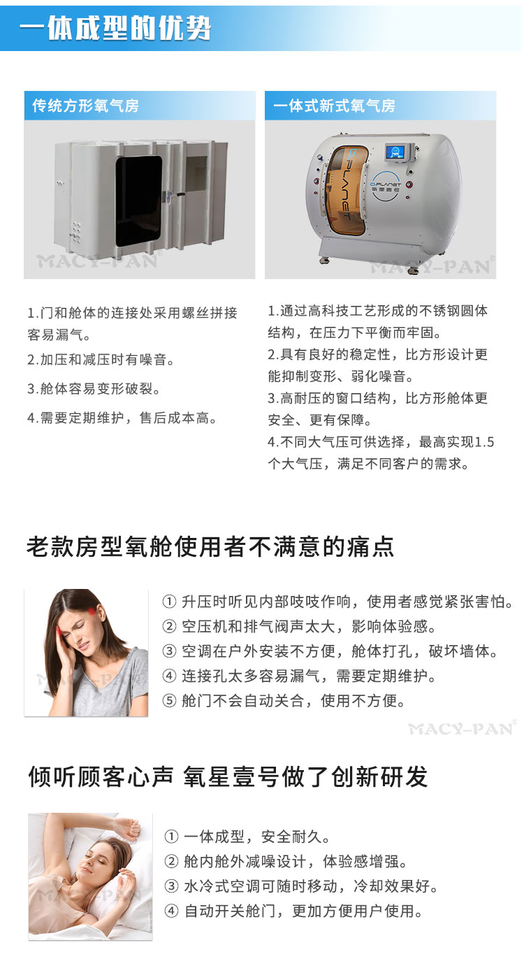 压力最高可达1.5ATA,一体成型,1-5人可以使用,四种模式可选择;一键升压,升压时不会咯吱异响。