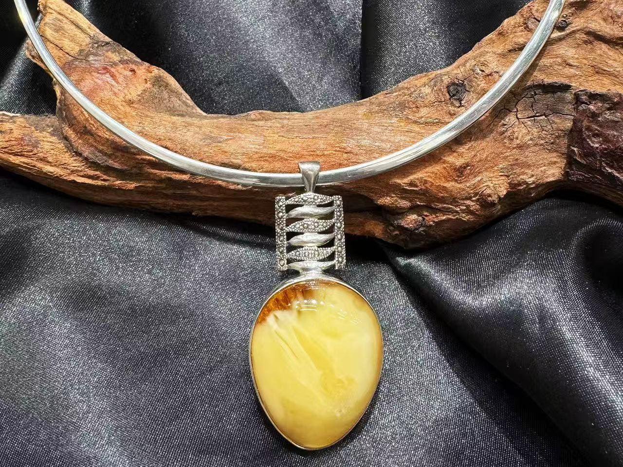 925银镶嵌琥珀饰品(吊坠、耳饰、手链、戒指)