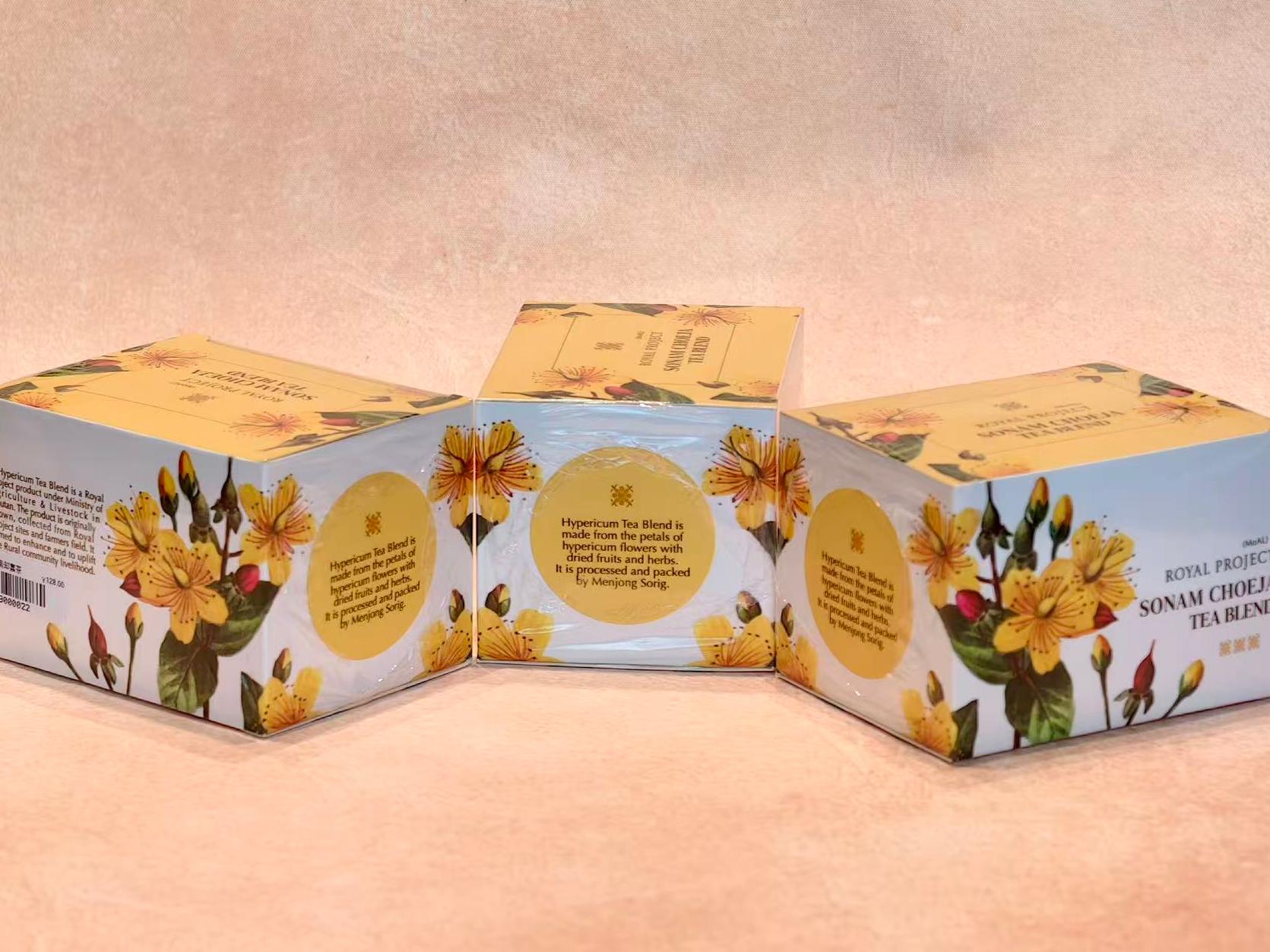 这款金丝桃混合茶,以金丝桃花瓣为主要原料,搭配干燥水果与草本植物精心调配而成, 风味层次丰富,兼具自然果香与草本清香。 其原料均源自项目指定产区及农户田间,从种植到采摘全程遵循项目规范,确保原料的原生品质与天然属性。而该产品的生产,更承载着明确的民生目标 —— 旨在改善并提升农村社区的生计水平,让每一份茶饮都成为连接项目发展与农户福祉的纽带。 金丝桃被喻为“天然阳光剂”,其精华能温和舒缓紧绷的神经系统,帮助消散日常压力带来的阴霾,让心境如雨后的不丹天空般澄澈明朗。 金丝桃与生俱来的镇静特性,能帮助安抚过度活跃的思绪,拥有更好的睡眠。 配合温和的热饮仪式,茶汤能促进身心韵律回归平衡,给予身体贴心的照拂
