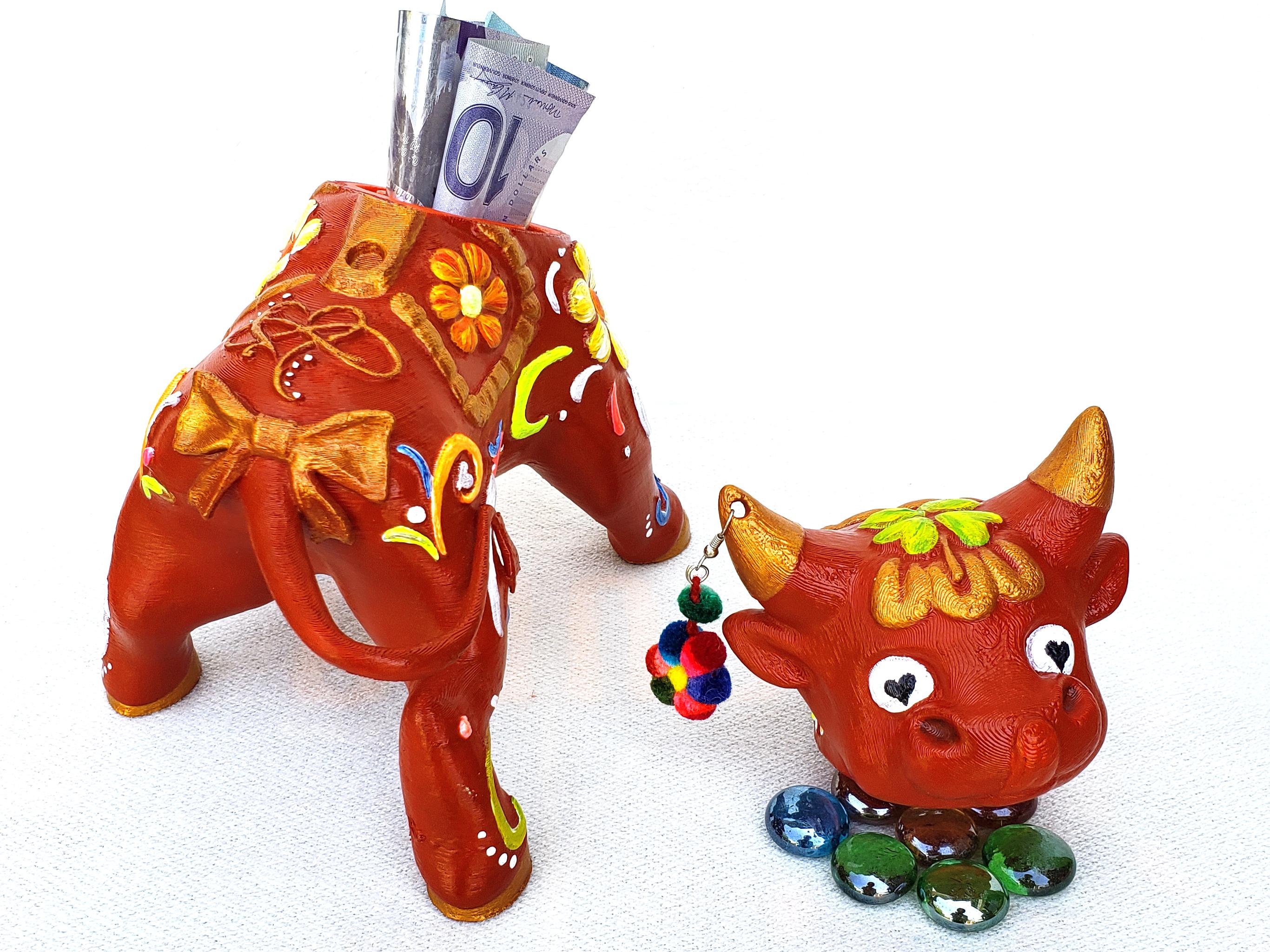 This 3D model is inspired by the Peruvian Pucara bull, a symbol of Peruvian Andean culture, representing protection, fertility, happiness, and prosperity. It has a removable head. It can be used as a piggy bank, jewelry box, etc. Innovative, interactive and utilitarian neo-craftsmanship and souvenirs!