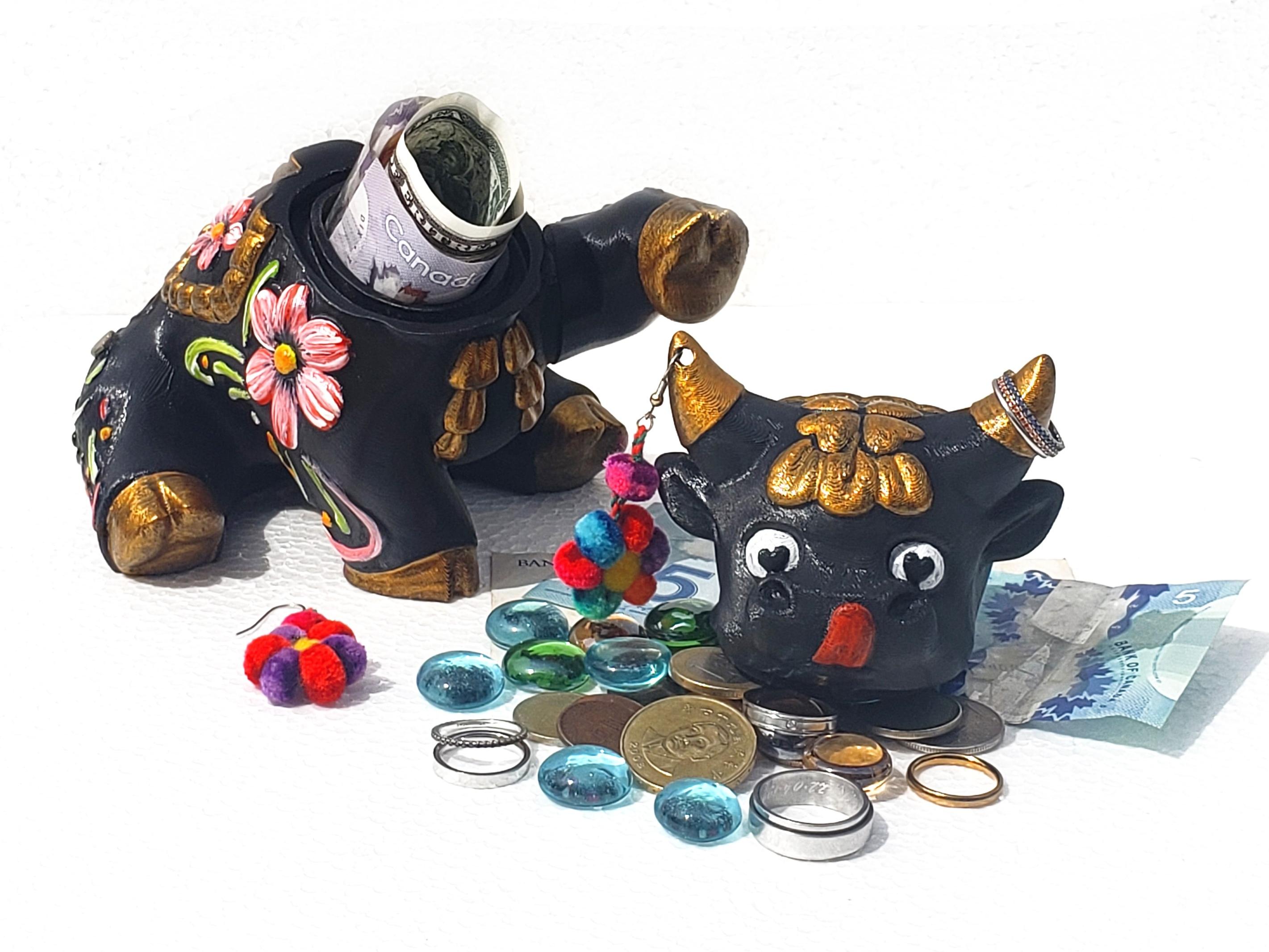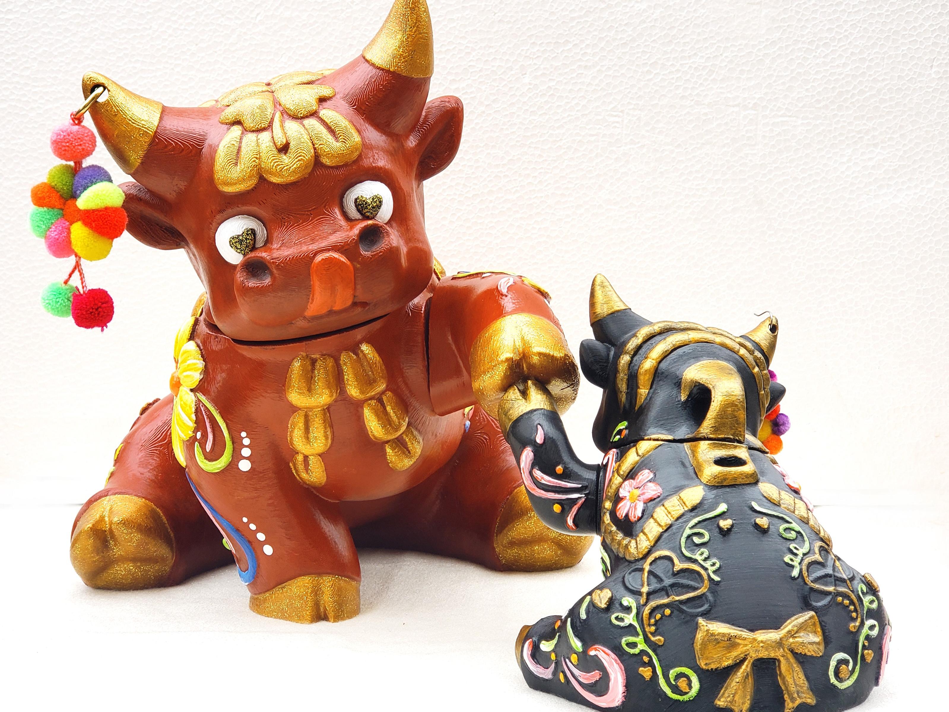 This 3D model is inspired by the Peruvian Pucara bull, a symbol of Peruvian Andean culture, representing protection, fertility, happiness, and prosperity. It has a movable leg and removable head. It can be used as a piggy bank, jewelry box, etc. Innovative, interactive and utilitarian neo-craftsmanship and souvenirs!