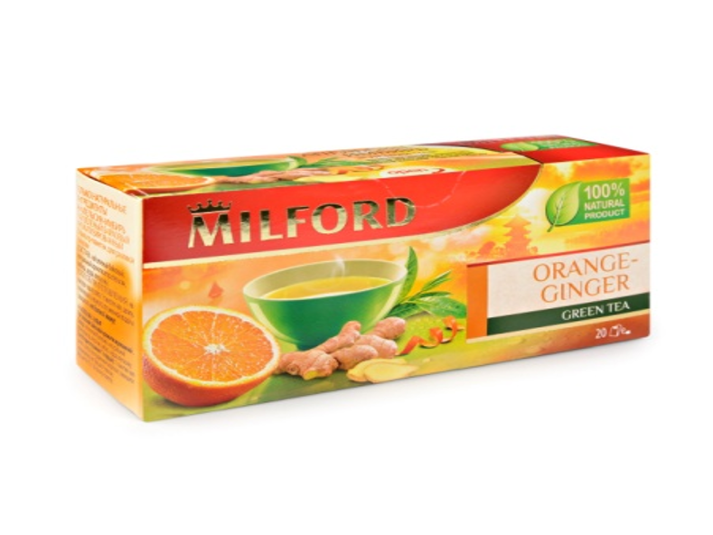 Зеленый чай Апельсин - Имбирь MILFORD Orange-Ginger flavoured green tea 20х1,75 g 橙子姜味绿茶 20×1.75克 |
