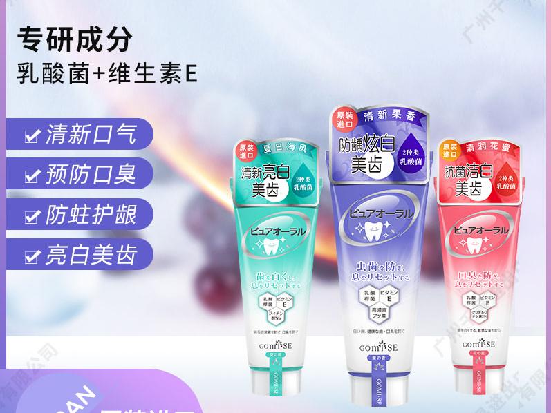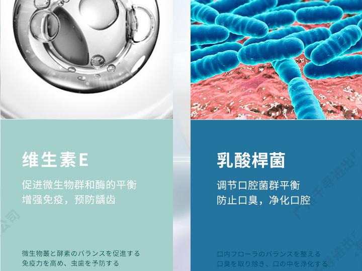 不二款:2种乳酸菌,分解牙渍色素,铺助净白 初醒款:2种乳酸菌, 含氟防蛀,强化牙釉质 风采款:2种乳酸菌,缓解牙龈红肿,减少刺激 清新亮白,净化口腔,抗菌洁白,平衡菌落