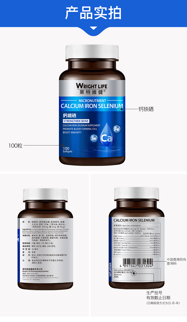 香港莱特维健 钙铁硒软胶囊 100粒