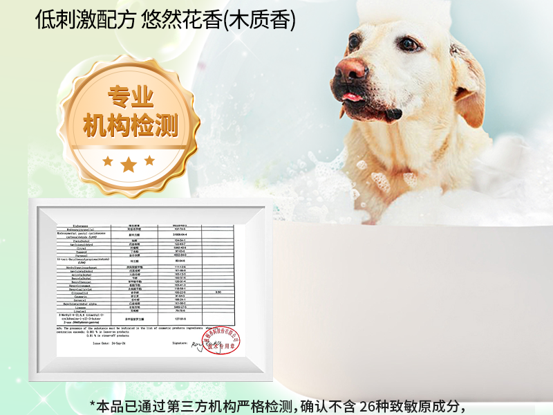 天然植萃成分:精选天然植物提取物,温和无刺激,安全呵护宠物皮肤 绵密泡沫:质地丝滑,无需稀释,揉搓即可带走污渍,清洁更彻底 悠然花香香型:清新木质香气,专业检测无26种香精致敏源成分,安全可靠 适用对象:专为狗狗设计,未满3个月的宠物请避免使用