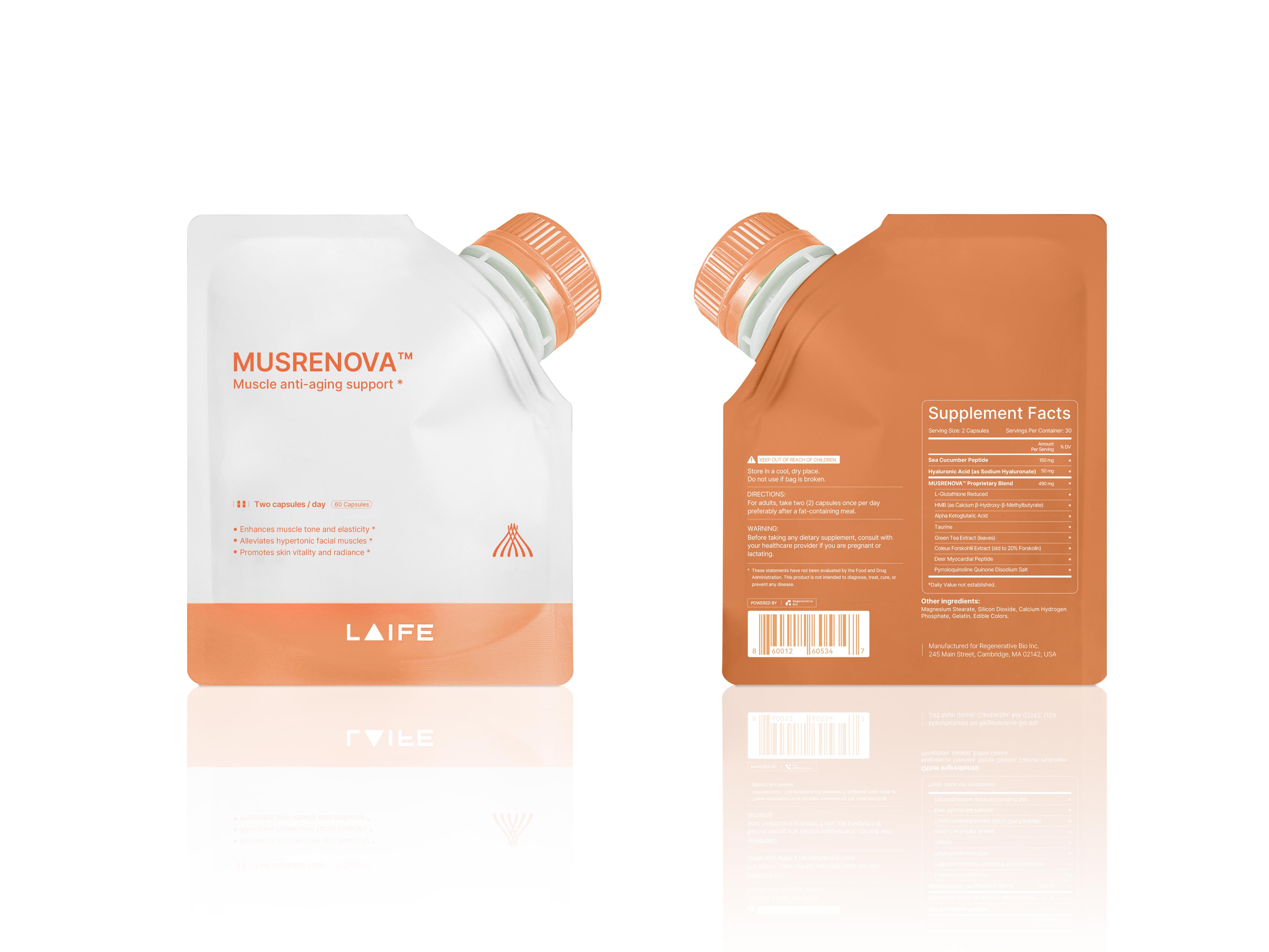 LAIFE旗下MUSRENOVA 肌龄锁肌肉抗衰胶囊,核心成分配方获专利(专利号:LU601362),包含多组针对性抗衰成分。其中,心肌肽可修复肌肉受损、激活肌肉纤维再生,HMB 能增强肌肉质量与抗疲劳能力,AKG 通过提升 NAD + 水平赋能肌肉细胞代谢,绿茶提取物(儿茶素)清除肌肉自由基;弗斯可林缓解肌肉亢奋、阻断皱纹形成,谷胱甘肽抵御自由基并抑制黑色素生成,PQQ 优化肌肉细胞、预防固化皱纹,牛磺酸对抗肌肉氧化损伤;海参肽促进皮肤细胞代谢修复,透明质酸钠深层保湿、增强皮肤屏障,多成分协同实现抗衰功效。 其核心用途是作为全球首个 “靶向面部肌肉群” 的口服抗衰方案,针对面部肌肉衰老引发的垮脸、皱纹等问题,通过 “提拉” 紧塑重建肌肉支撑力、“抚纹” 匿龄减轻肌肉亢奋度、“润透” 肌底充能表 / 真全皮层,从肌肉层根源改善衰老,21 天可逆转肌龄 4.7 岁,适用于 20 岁 + 不同肌龄阶段人群,实现面部抗衰与肤质改善双重效果。