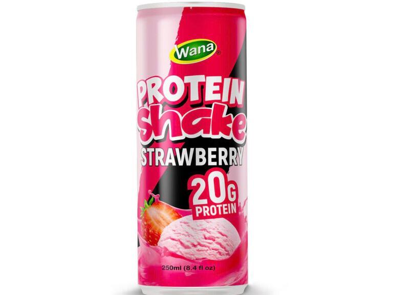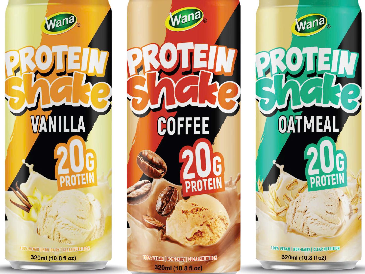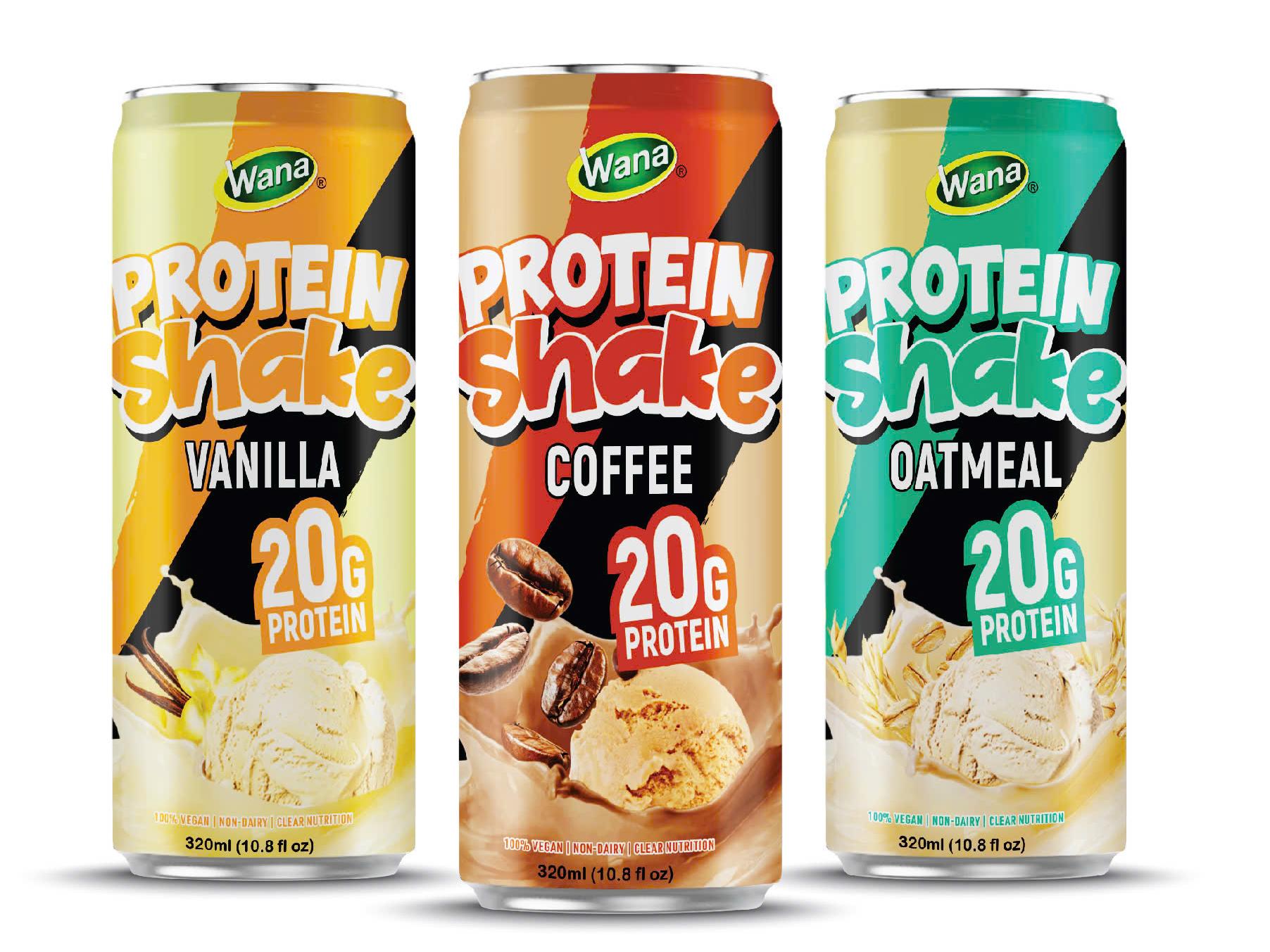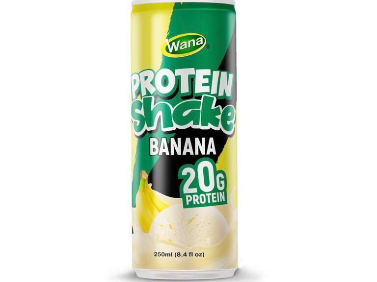 WANA BEVERAGE PROTEIN SHAKE DRINKS + Volume: 250/ 330/500 ml + Packaging: Alumium Sleek Can + Ingredients: Water, Whey protein concentrate, Sugar, Whole milk, Guar gum, fruit flavor