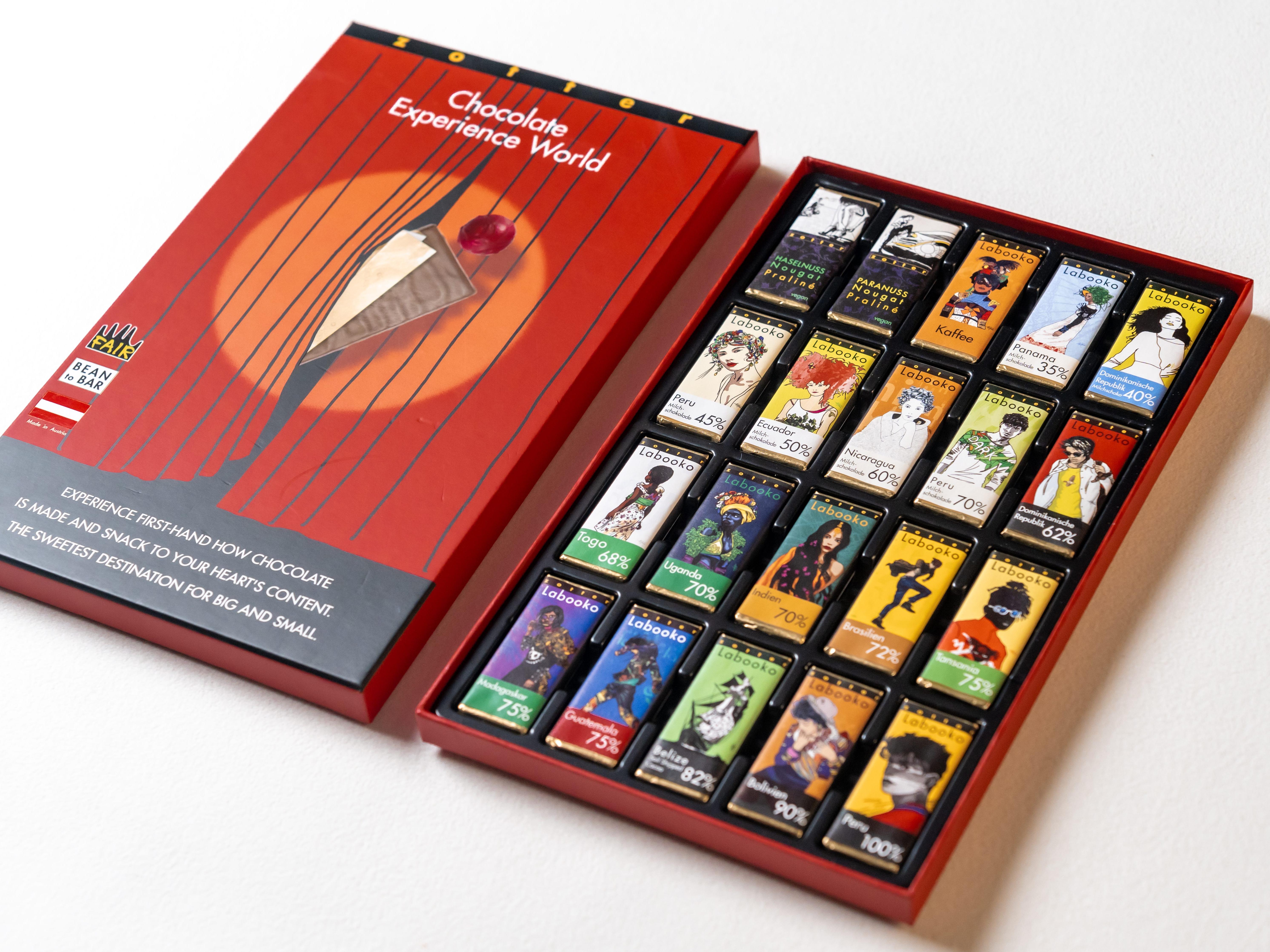 奥地利纯进口,一盒由20种不同口味及产地的巧克力组成的礼盒。由孩童喜爱的甜食巧克力开始,直至可可含量高达100%的黑巧克力,一盒分享装巧克力礼盒,老少咸宜,送礼佳品。