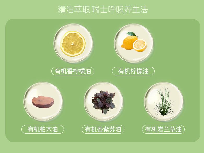 一种能帮助您保持镇定和自控的令人舒适的香气成份:有机香柠檬精油,有机柠檬精油,有机雪松精油,有机香紫苏精油,有机岩兰草精油。
