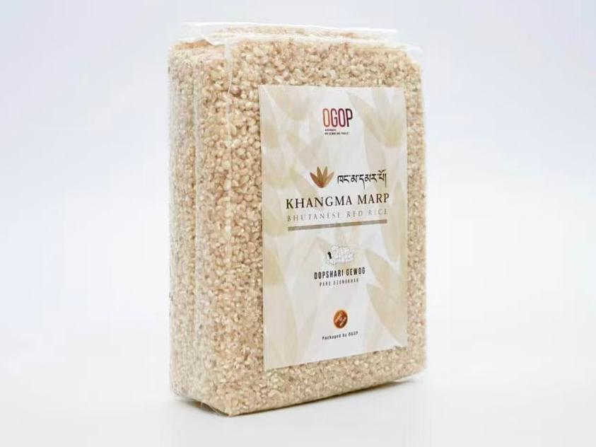 不丹红米饭(Bhutanese Red Rice)是不丹的主食食材,数百年来,其种植区域主要集中在不丹西部地区,深深融入当地饮食文化与日常生活。 康马玛普(Khangma Marp)是不丹红米饭中的独特中粒品种,兼具营养与风味优势:它富含膳食纤维与多种必需营养素,能为身体提供充足能量;口感上更以浓郁的坚果香气著称,煮熟后米粒饱满有嚼劲,香气沁人,让简单的米饭也能成为味觉焦点。
