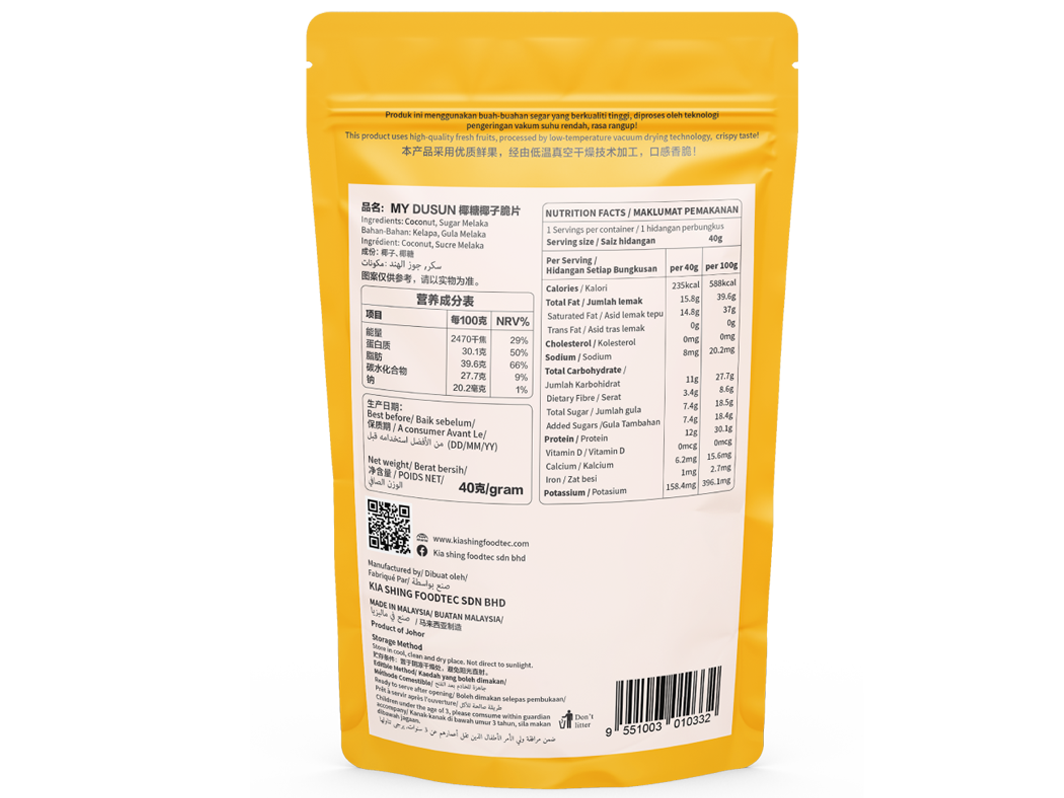 椰糖椰丝脆片采用新鲜椰丝与香浓马六甲椰糖(Gula Melaka)制成,