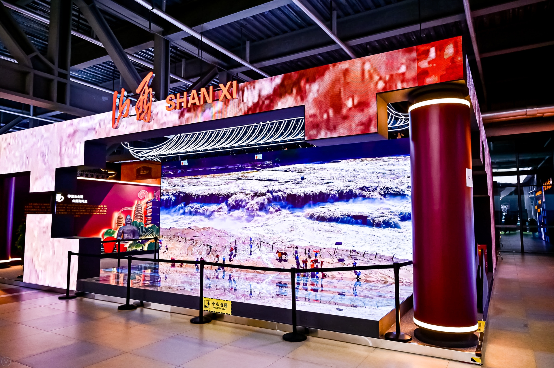Inspired by the staggered design of LED screens, the exhibition hall showed the endless rushing of the Yellow River and the rolling of the Taihang Mountains, thus abandoning the use of the wooden structure as the facade.