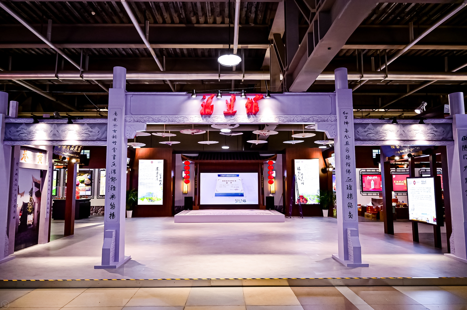Taking "Horse Head Wall", the architectural characteristics of Fuzhou`s Three Lanes and Seven Alleys, the exhibition hall recreated the layout of Three Lanes and Seven Alleys and used the pagodas of the lanes and alleys throughout the exhibition area.