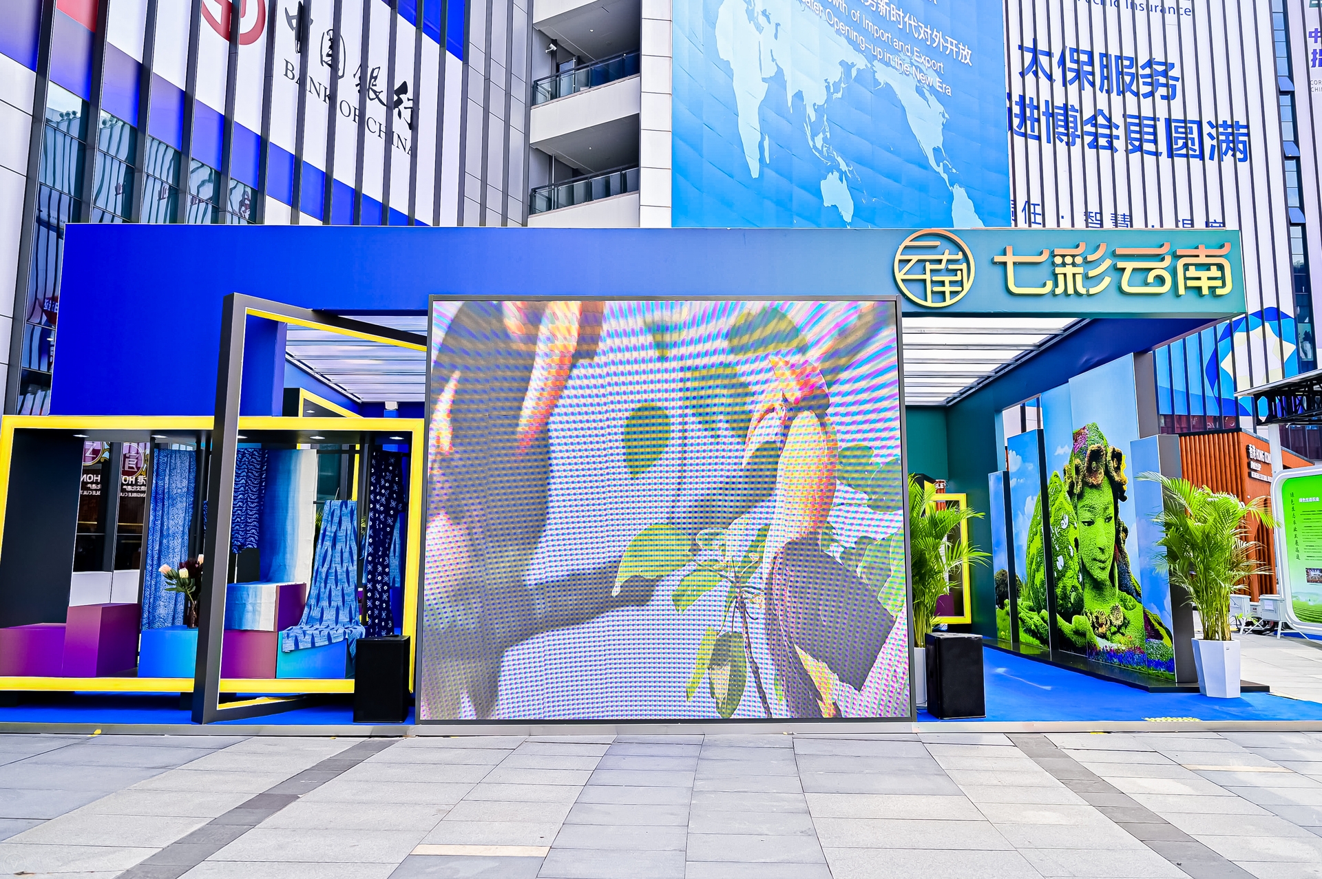 Built in the style of staggered "blocks" and gradations of blue and green, the exhibition area reflected the vast blue sky of Yunnan and the tranquil lakes of the plateau.