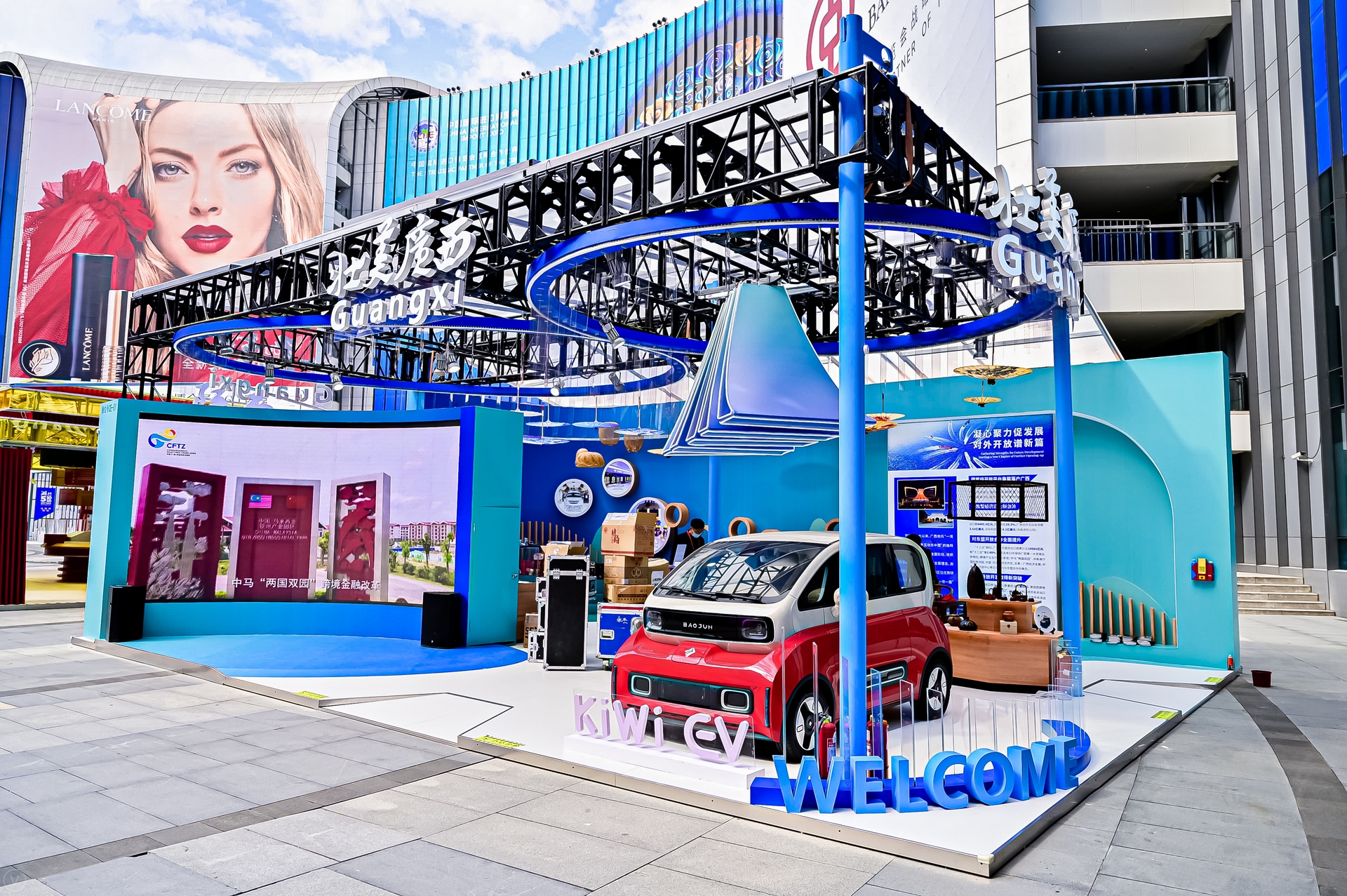 With the theme of "Magnificent Landscape in Guangxi, Emancipating the Mind and Creating a New Landscape", the design of the exhibition hall was based on the concept of the new development pattern in which domestic and foreign markets boost each other and the landscape and cultural activities of Guangxi.