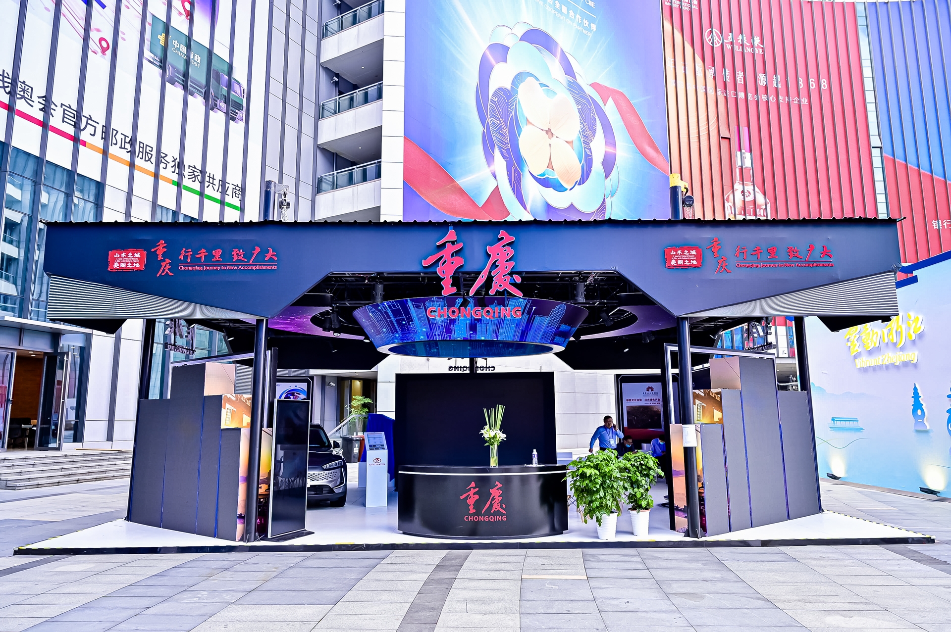 With the concepts of "openness and development" and "innovation and progress", the exhibition took into account the city landmarks such as Chongqing People's Auditorium, Chongqing Grand Theatre and Chongqing Chaotianmen Bridge.