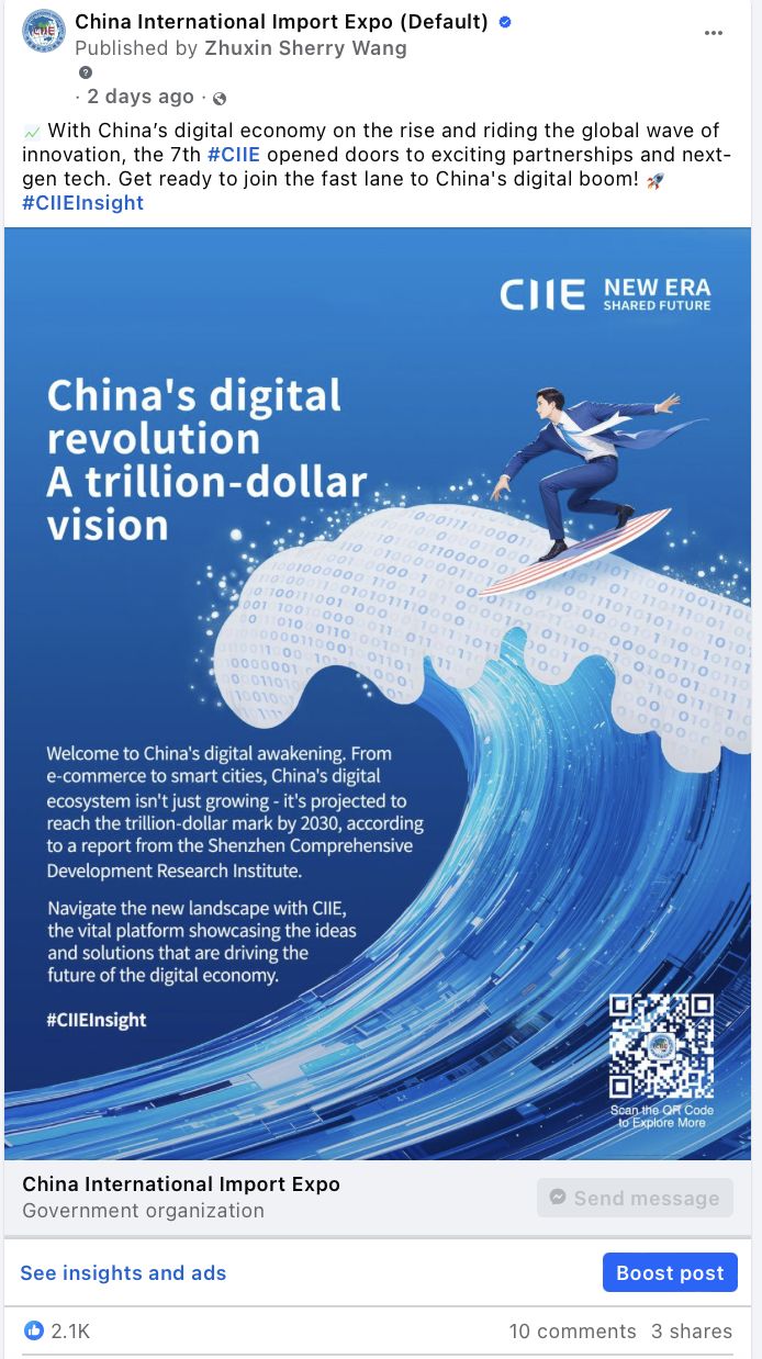 11月26日至29日,“进博故事”相关海报及“进博洞察”人工智能篇、数字经济篇海报在海媒平台发布,总浏览量超过42万次,总互动量超过2.3万人次。