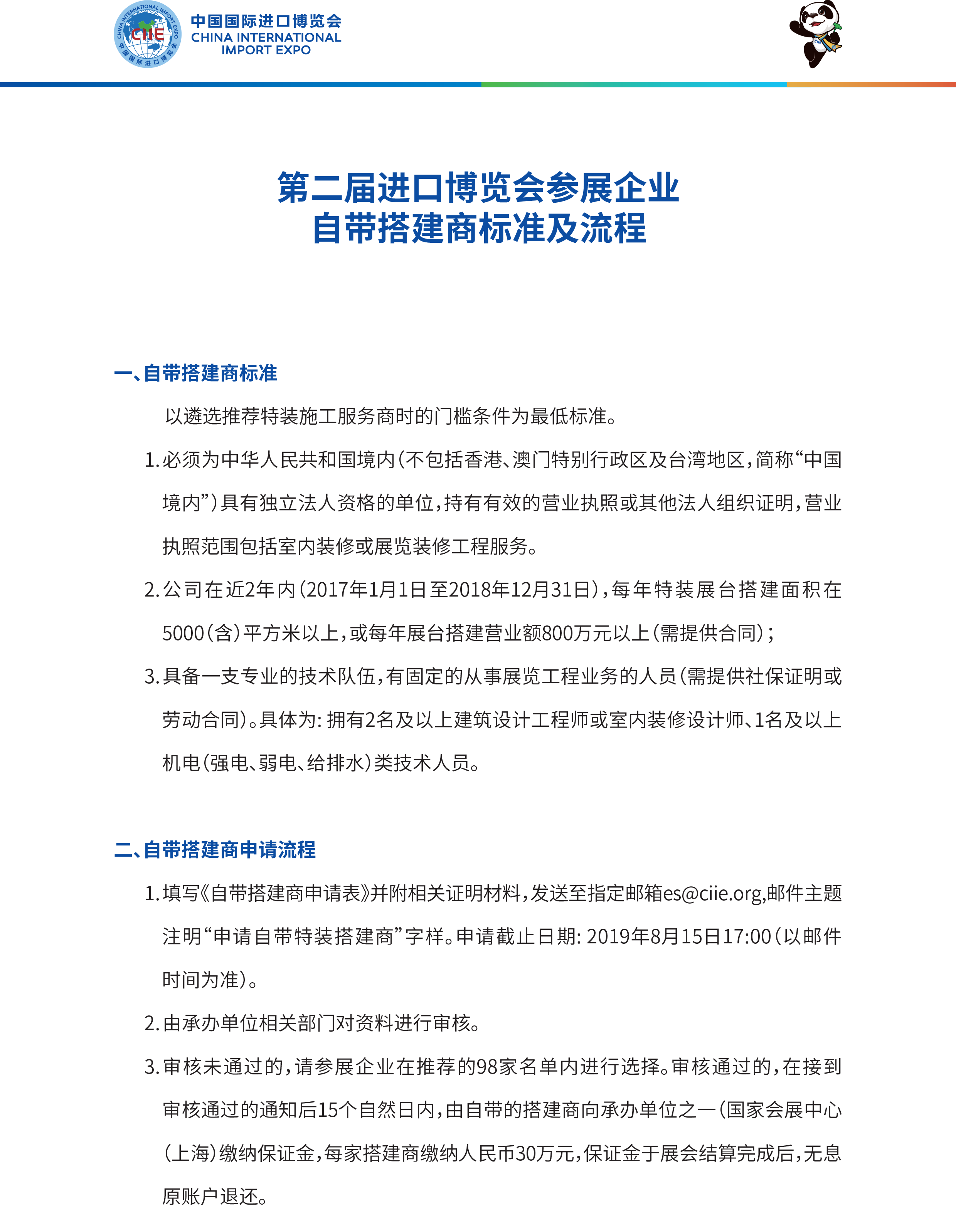 第二届进口博览会参展企业 自带搭建商标准及流程